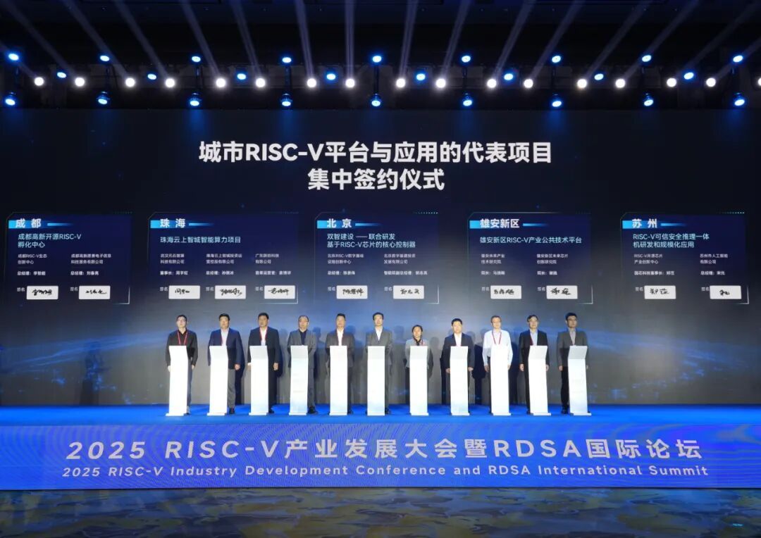 与此同时,北京、雄安、珠海、苏州、成都五大创新高地携手当地领军企业及平台,举行“RISC-V平台与城市应用代表项目签约”,共同推动RISC-V技术在智能网联汽车、数据中心建设、人工智能等场景下的示范化应用,打造全国领先的应用示范标杆。