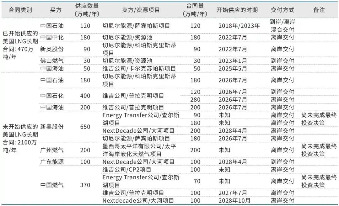 表3 中国企业签署的美国LNG长期合同情况