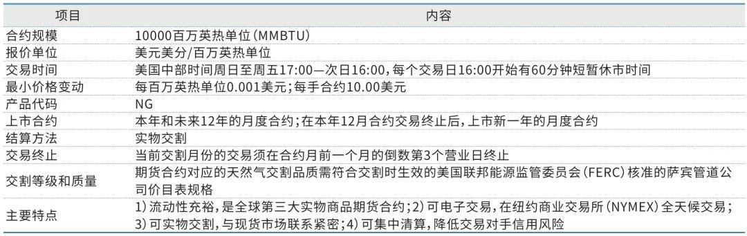表1 亨利枢纽天然气期货合约基本情况