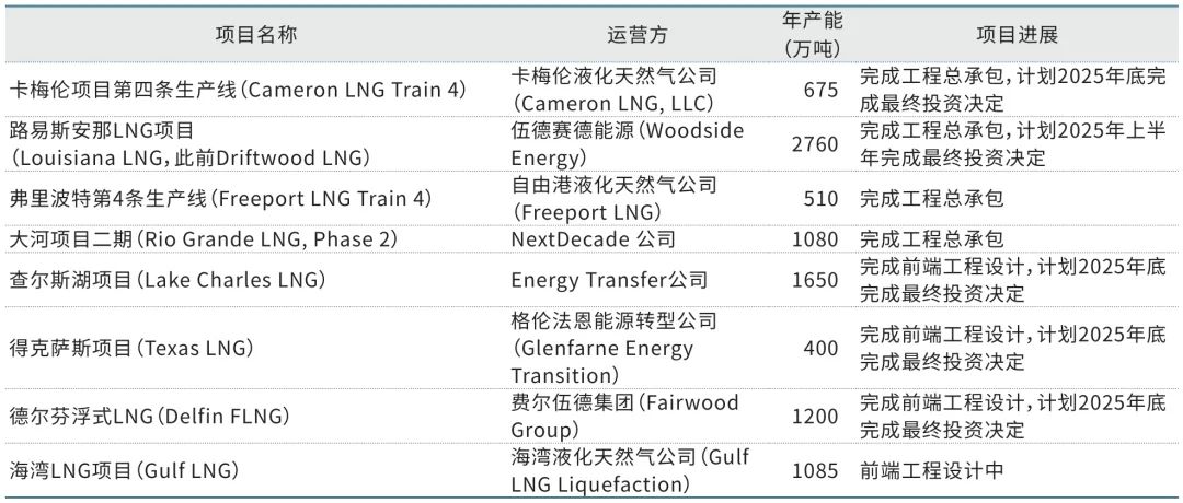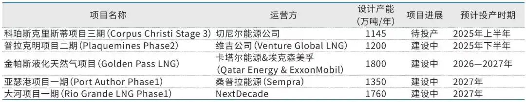表5 美国已通过审批但未完成最终投资决定的LNG出口项目