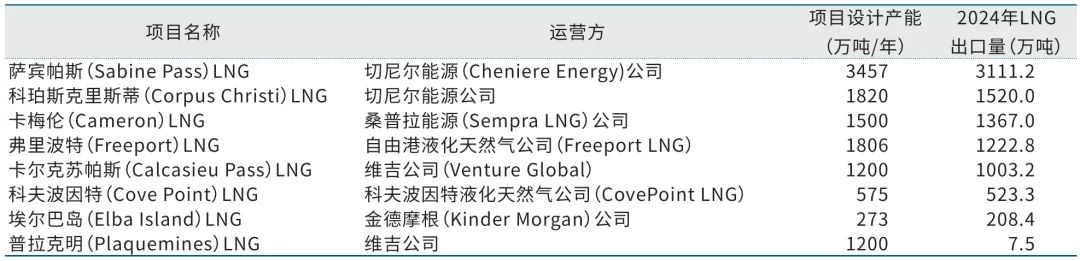 表2 美国在运营LNG项目产能及出口情况