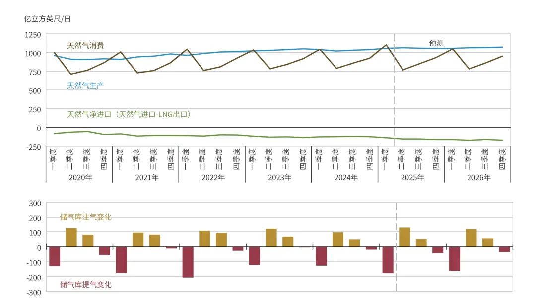 图4 美国天然气供需平衡状况及预测