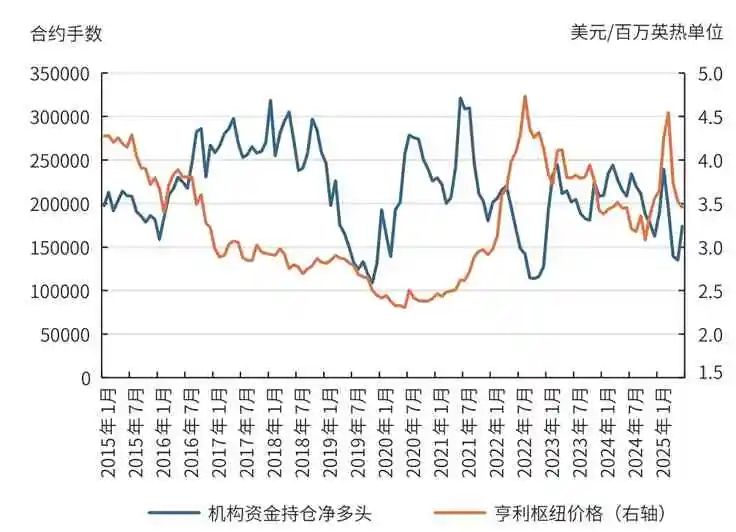 图8 机构资金净多头持仓和亨利枢纽价格相关关系