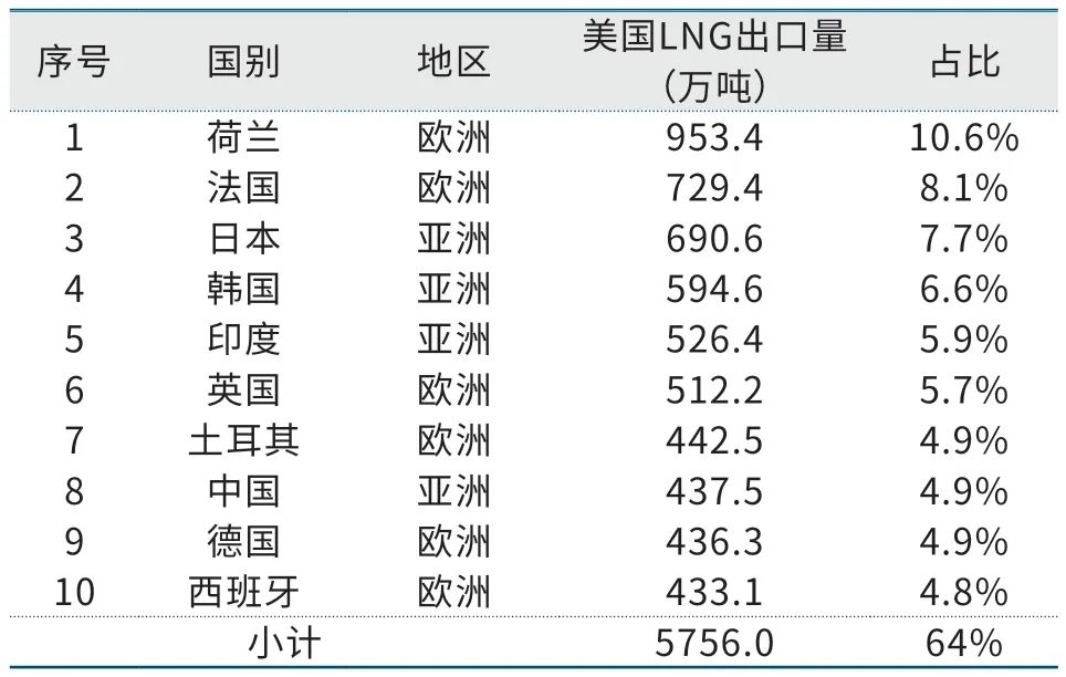 表4 2024年美国LNG出口前10大目的地国家