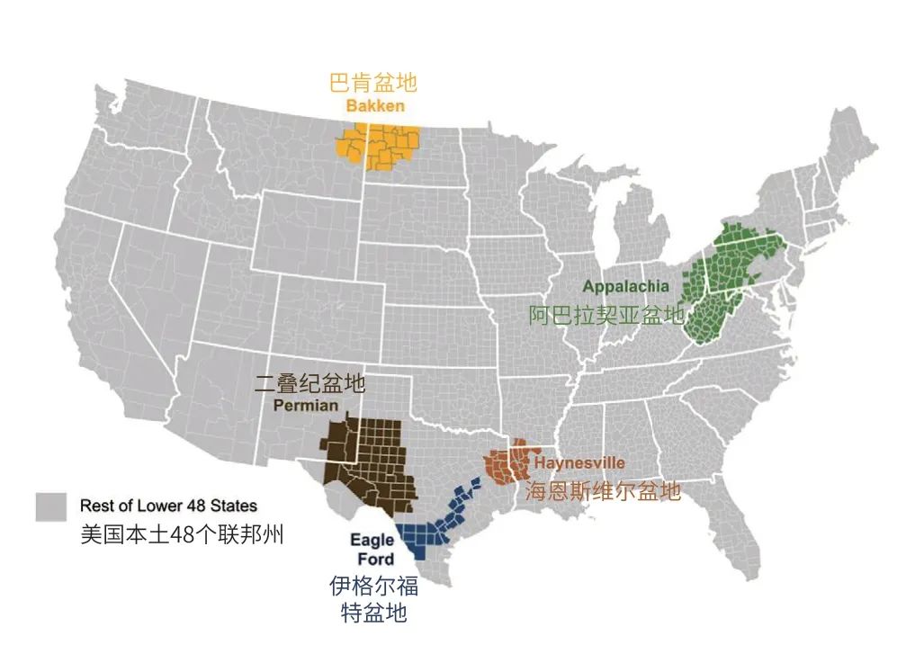 图2 美国本土天然气生产地区分布