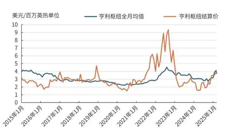 图10 2015—2025年亨利枢纽价格月均值和结算价格走势变化对比