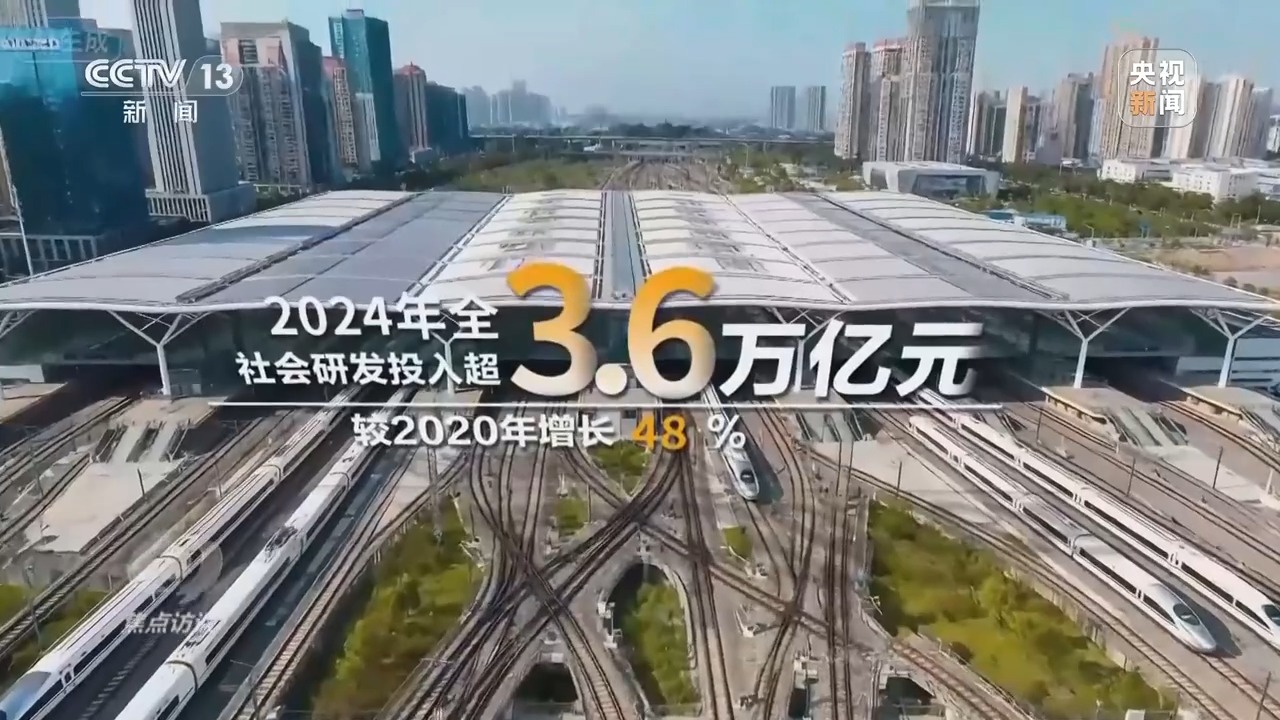 我国研发投入再创新高。2024年全社会研发投入超3.6万亿元,较2020年增长48%;研发投入强度达到2.68%,超过欧盟国家平均水平;研发人员总量世界第一。